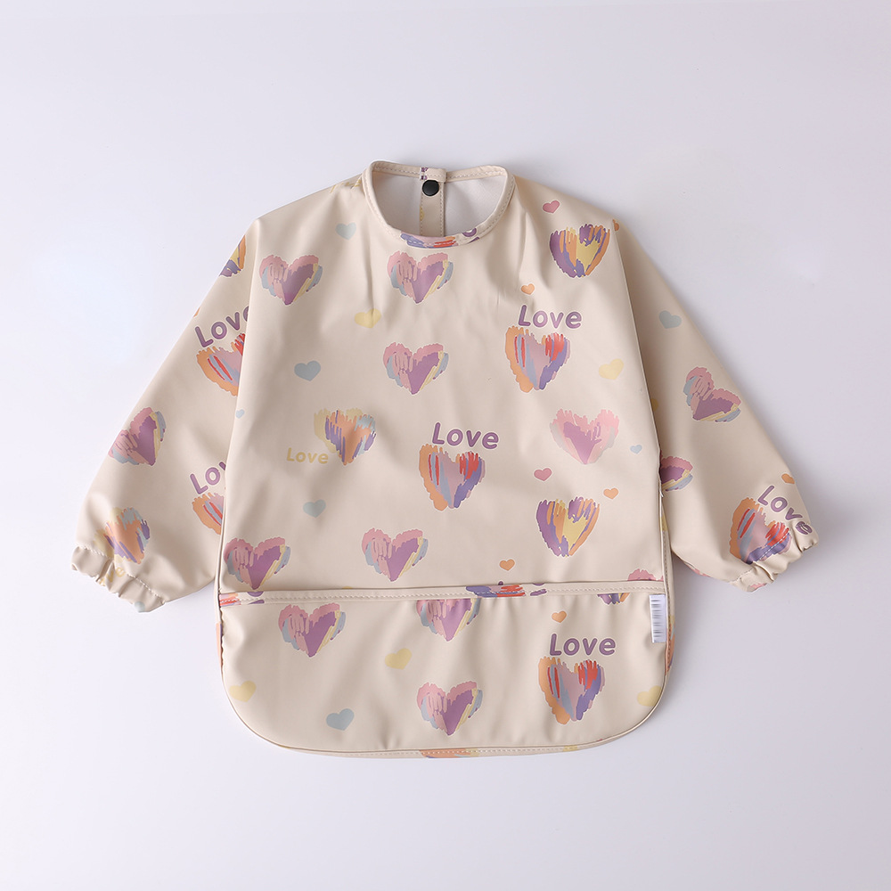 beige love and hearts sleeved bib